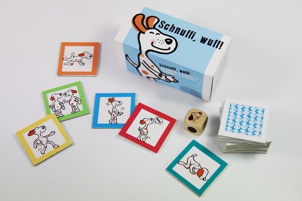 The game consists of a special die and a set of tiles. These depict things that dogs do (sniff, pee, run, etc.). In the basic game, the children take turns picking up a card and acting out the action. Then they can keep the tile. At the end of the game, the player with most different card colors is the winner. In a competitive variant, the players take...
