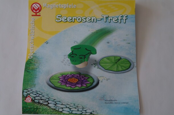 By flicking Frog-chips using a magnetic device, 2-4 players try to hit the water lily leaves on the board to score victory points. German description from the publisher: Der Frosch fühlt sich recht unwohl an Land und ist deshalb gerne an seinem Lieblingsteich. Dort kann er es sich auf einem der vielen Seerosenblätter so richtig gemütlich machen. Lediglich...