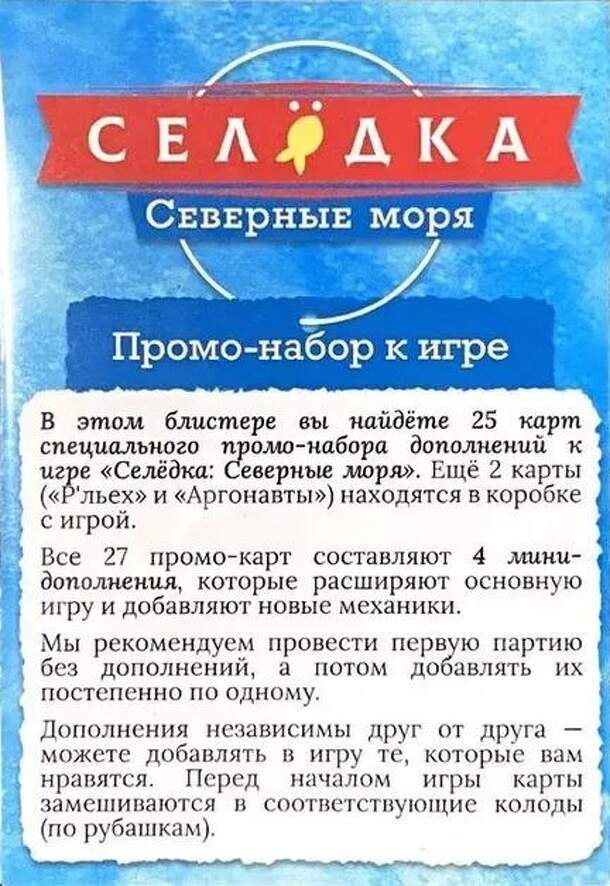 In this game players create marine ecosystem by playing cards with different animals. Each animal need to be feeded. Small fish eat plankton (it means that player takes new cards in his hand), big animals eat small animals. Players get points for plaing cards with big animals and for adding on table new animal species. But beware the destruction level!...