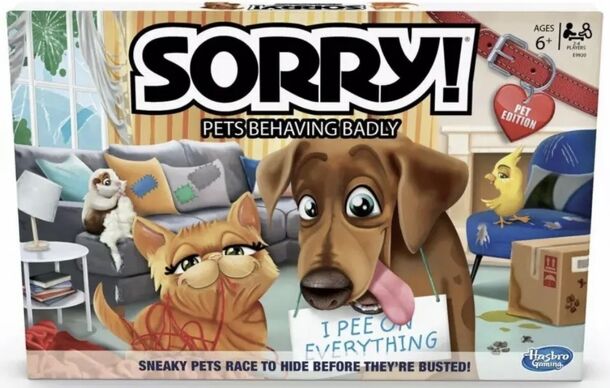 It's a twist on classic Sorry! gameplay with a hilarious pet theme. In the Sorry! Pets Behaving Badly game players move around the board as the furry or feathered troublemakers who have trashed the house. It's a race to be the first to hide before the human gets home, but watch out for the poops! It's an unpredictable game of strategy, chance, and luck as...