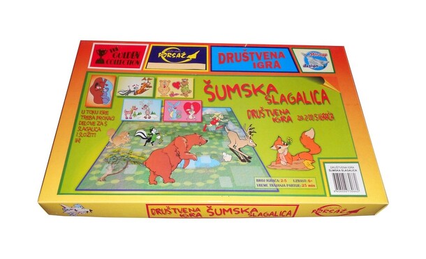 Šumska slagalica (Forest puzzle) is game for younger players. On the board is presented forest with many paths. Along the paths are parts of 5 different mini puzzles. Players roll the dice and move figurines along the paths. When figurine comes to marked field that is next to piece of puzzle - player takes the part. The player needs to bring figurine to...