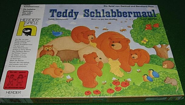 Objective: Try to protect (as a bee) your honey - cooperative game Players are using 2 colour-dice & moving by turns One die should be assigned to the bear, the other to the active bee/player Big bear is watching bees and finds out, that honey is produced by these small animals. If the bees will support each other they have a chance to protect their honey...