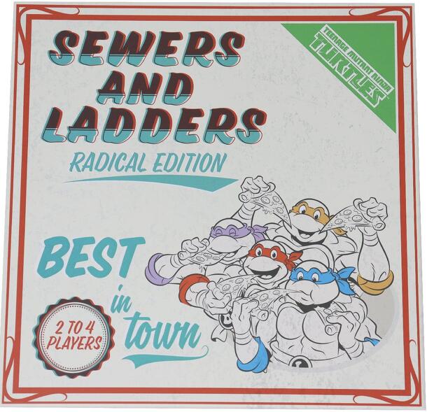 Created by a team of fanatical film and video game fans who grew up in the 80's and 90's watching and reading about the adventures of Leonardo, Raphael, Donatello and Michelangelo. Wanting to relive their memories they created 'Sewers & Ladders’ in the hope that you enjoy playing this game as much as they did creating it! With a board measuring 400x400mm...