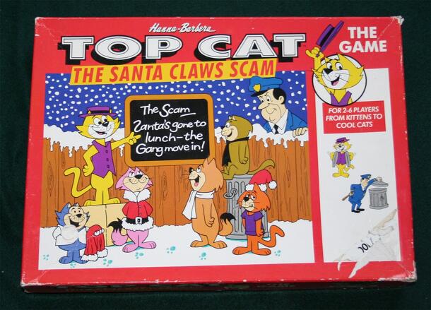A Christmas-themed Board Game for children, based on Hanna-Barbera's Top Cat TV series. "It's Christmas, and Top Cat and the gang are on the look out for some easy money to buy the last prize hamper in the shop. Top Cat's plan is to dress up as Santa, and stand in front of shop entrances collecting money. After all, everybody would like to help a poor...