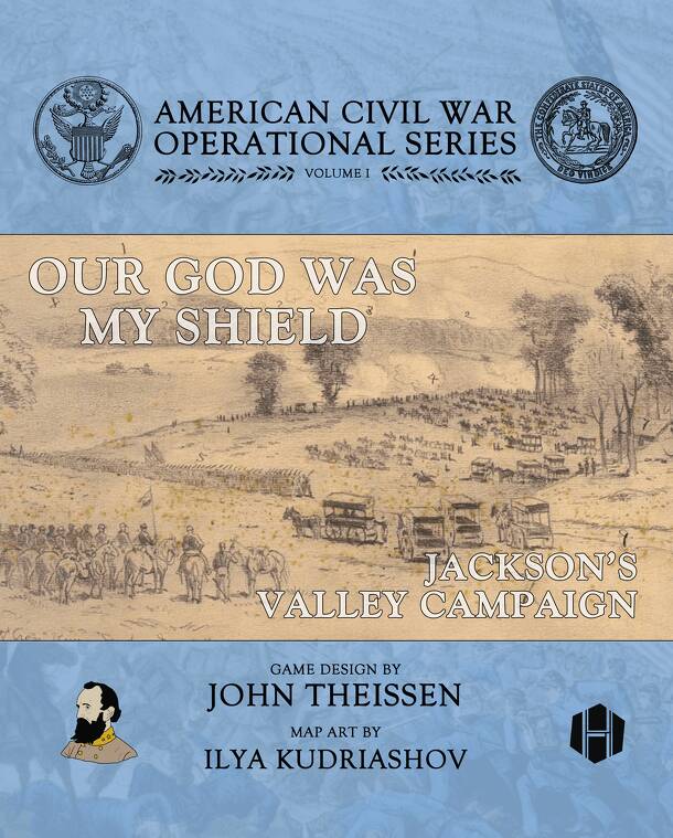 Our God Was My Shield is the first game in John Theissen's American Civil War Operational Series (ACWOS). This series of streamlined card-assisted operational sandboxes builds on Mr. Theissen's work in titles such as More Aggressive Attitudes, Objective Shreveport, and Hood's Last Gamble. Those games had slightly different and not entirely compatible...