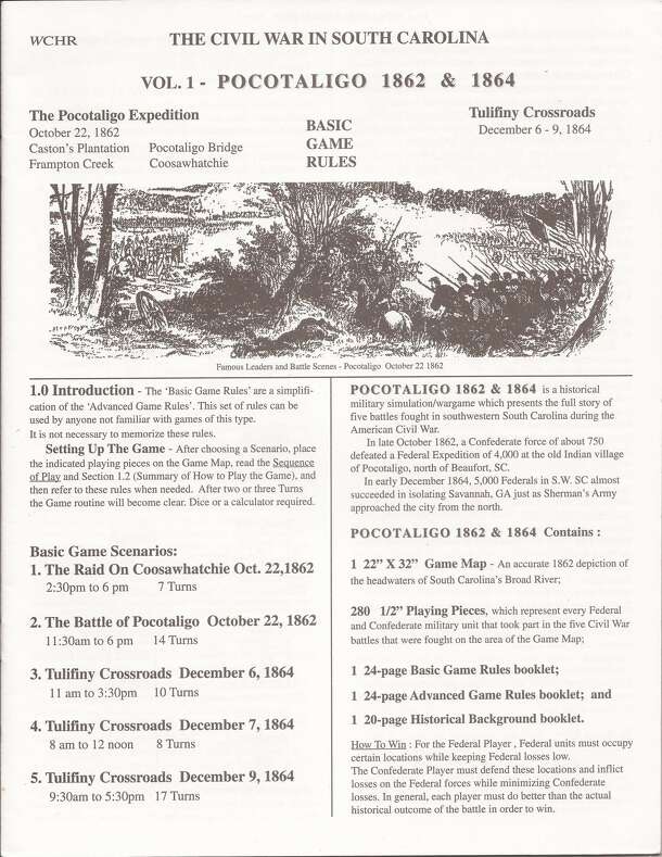 (from the publisher:) The War Between The States near Hilton Head Island and Beaufort, South Carolina. Includes: a color 2' x 3' mapboard (unmounted), 280 first-rate 1/2" playing pieces, a 24 page Advanced Game Rules booklet, a 24 page Basic Game Rules booklet, a 20 page Historical Background booklet, and hard stock Sequence of Play, Fire Combat, and...