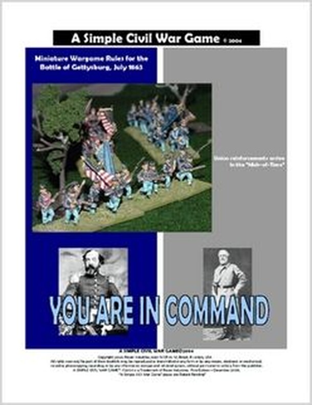 A SIMPLE CIVIL WAR GAME DELUXE © 2004 Simple wargame rules for re-fighting the Battle of Gettysburg Game includes: 16-page rule book 32-page Armies of Gettysburg (Ratings for all regiments and leaders) 50 card movement and firing deck of cards (using Avery Business Card Template 5377) Full Color cover sheet with “Grand Battery” errata on reverse side...