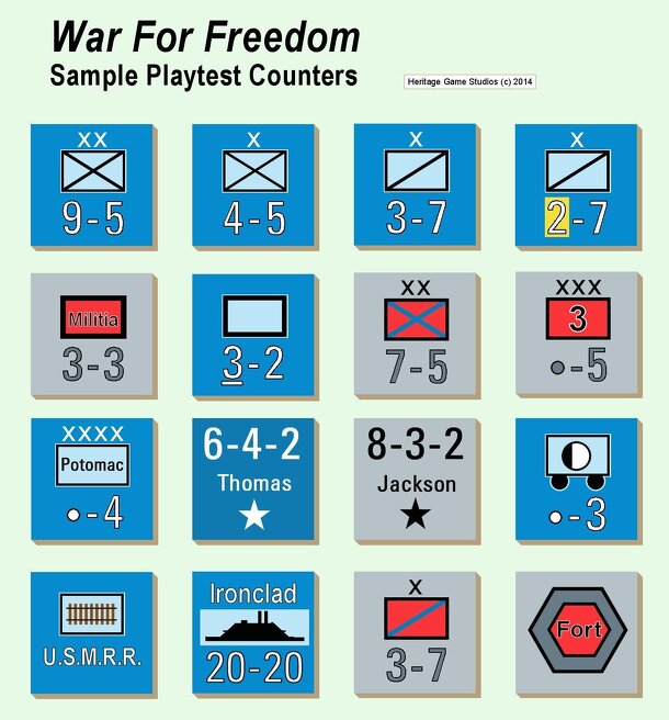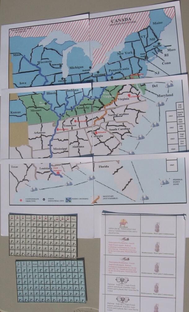 Large multi-map, operational-level game covering the entire American Civil War that is easy to play. Division and Brigade-level. Naval units and Confederate trade aspects. Political rules. Weekly turns. Production and historical reinforcements. Focuses heavily on hidden units, recon and fog-of-war. Several card decks that add random events and historical...