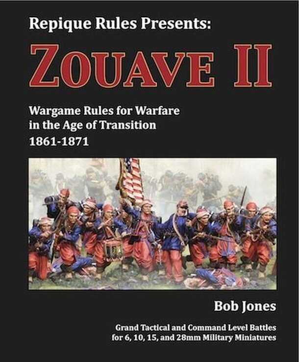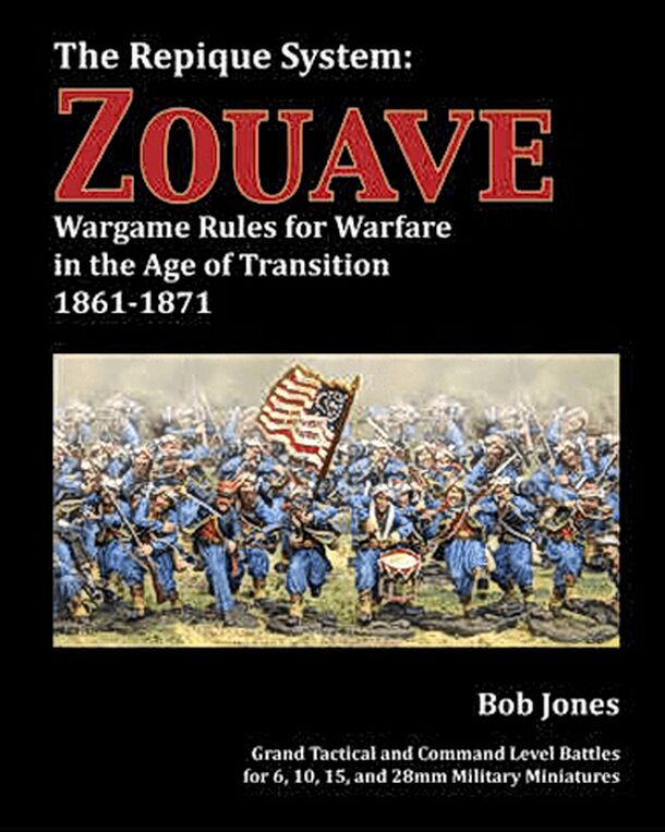Wargame Rules for Warfare in the Age of Transition 1861-1871 Zouave is the first release in the Repique System, and the latest miniatures rule set by Bob Jones of Piquet fame. The game offers command level and grand tactical options, for 6mm to 28mm miniatures. The period covers not only the ACW, but also the Franco Prussian War and the Maximilian...