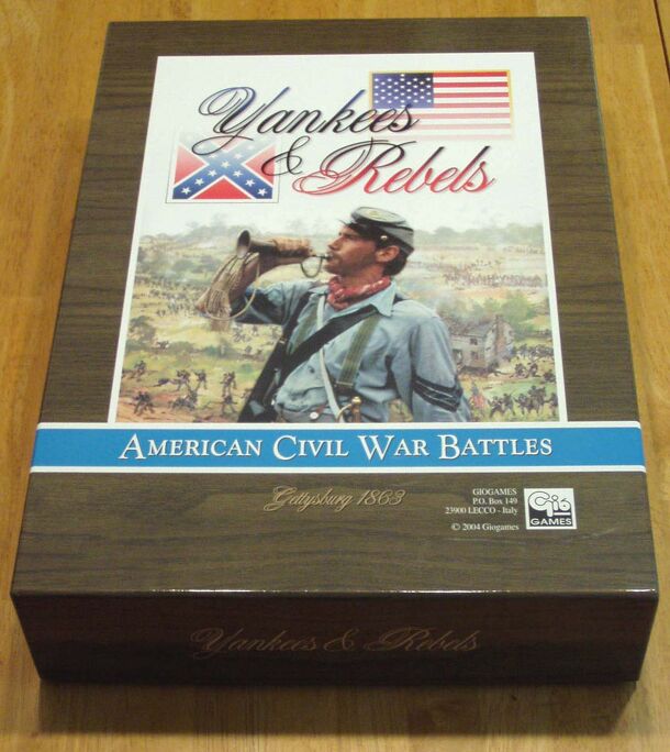 "Yankees & Rebels" is a 2 player modular wargame, capable of simulating the major battles of the American Civil War. The primary scenario included with the game is called "The Three Days of Gettysburg". The game is played on a hexagonal board, onto which cardboard hexes are placed, to simulate the layout of different battlefields. Playing pieces (military...