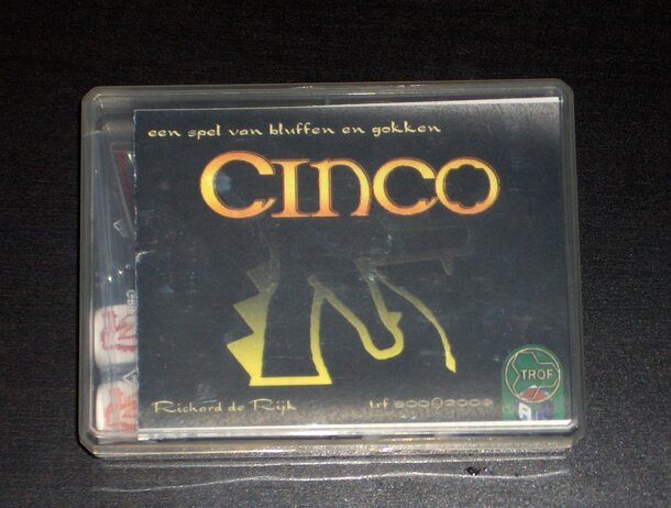 Cinco is a dice-game reminiscent of Bluff/Perudo. Instead of dice with pips, there are differently colored dragons on each side of the dice. The players roll the dice in secret, then bid increasingly strong sets of dragons, untill one of them lifts the cup. The game differs from bluff mainly in the fact that you lose tokens instead of dice, and in the fact...