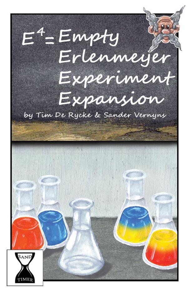 E4 (Empty Erlenmeyer Experiment Expansion) is the first official expansion for Experiment. This expansion gives the players new options to choose and new strategies to play the game. E4 introduces a new card type: the special lab card. Special lab cards are mysterious, no player may look at them before taking them. You never know what you are going to get...