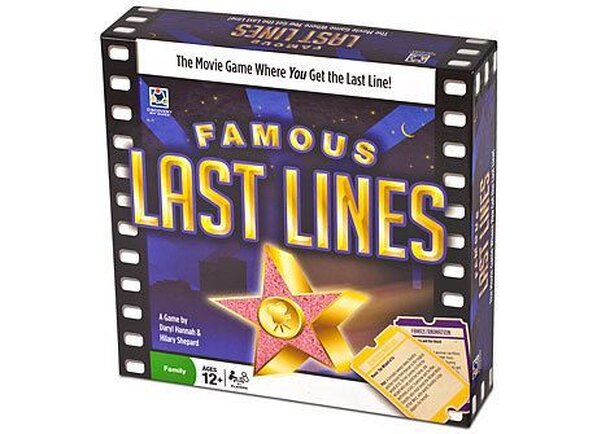 "In Famous Last Lines, by actresses Daryl Hannah and Hilary Shepard, players read the movie title and plot and create their own “fake” last line of the movie. Movie categories include Drama, Comedy/Romance, Action/Western, Sci-Fi/Horror/Mystery, Family/Animation, and Classics/Musical. The object of the game is to bluff other players into guessing that your...