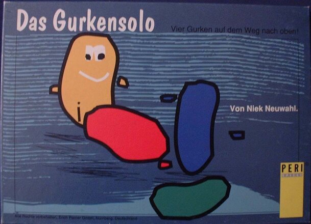 The game features a race of four wooden cucumbers along 12 numbered fields. Each player draws a card showing the order in which the cucumbers should pass the finishing line. In every turn each player picks two cards containing statements about the race's standings, e.g. "The red cucumber is not ahead of the green cucumber." Now the player must choose one...