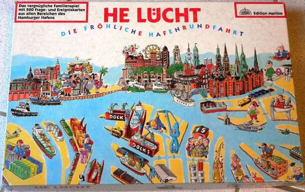 The game is called "He Lücht", translated this means "he's lying". Each player rolls a die and moves around the game map (which depicts the Hamburg harbour). On special spaces he may ask a real or a "He Lücht" question. If he can answer the question he may move on. Some special events happen if the player moves on defined spaces. The player who reaches the...