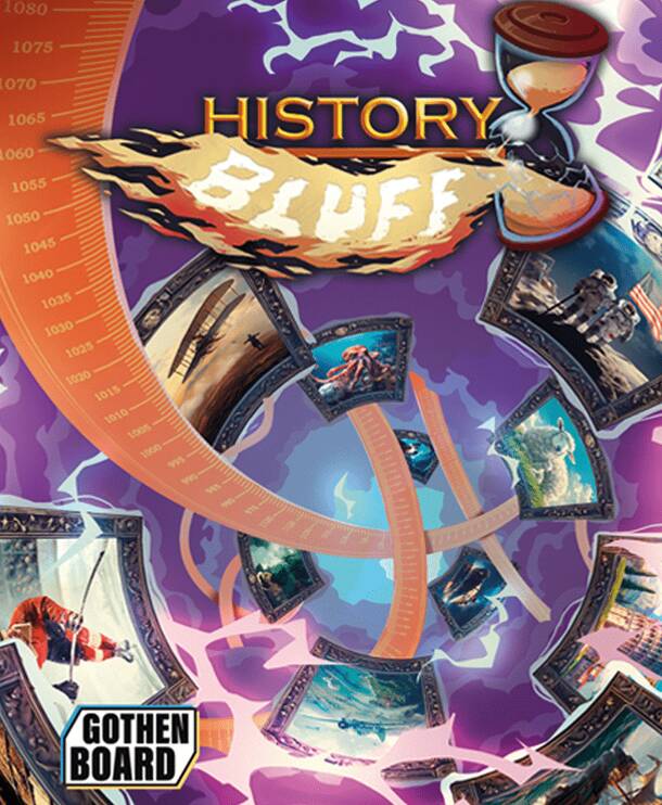 History Bluff – the game where you and your fellow players journey through time and witness some of history’s greatest moments. Once you arrive, it’s up to you to uncover what era you’ve stepped into. Use your knowledge of history to earn points, or mislead your opponents and score from their mistakes. During each turn, all players place either a BET card...