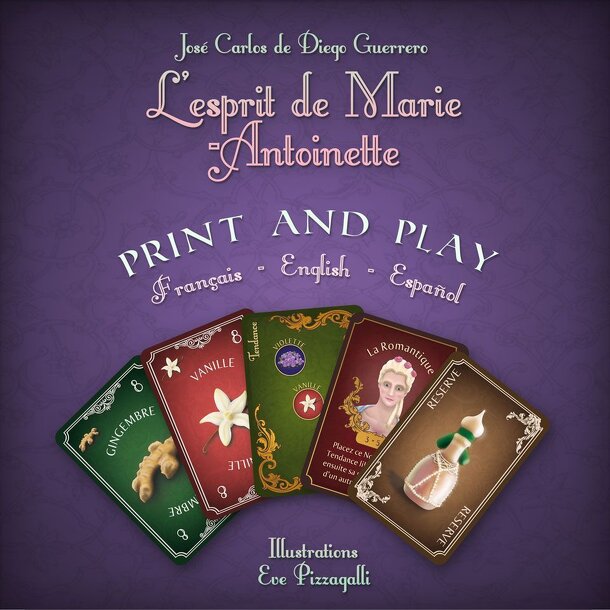 Each player assigns Scents from his hand between the various Preparations of his parfumothèque. At the end of the game and taking into account the Trends that are marked by the Parisian Nobility, the Preparations are presented to Marie Antoinette. The player who gets more points wins; one of his Preparations would become "The spirit of Marie Antoinette"...