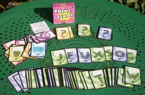 Most of the cards in this card game are letter cards, with which a word is formed; the rest are special action cards. Each player has six cards at the start of the game; the goal is to get rid of one's cards first. The first player plays a card on the table; this card will be the first letter of a word that s/he thinks about (but doesn't say out loud). The...