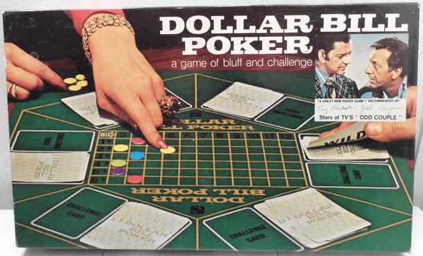 Dollar Bill Poker - An inset on the box lid shows Tony Randall and Jack Klugman endorsing the game. Dollar Bill Poker (a game of bluff and challenge) is similar to "Liar's Dice" using a special deck of numbered cards instead of dice. There are six cards of each number 1 through 6 and six "Wild Cards". Everyone (from two to six players) starts with a...