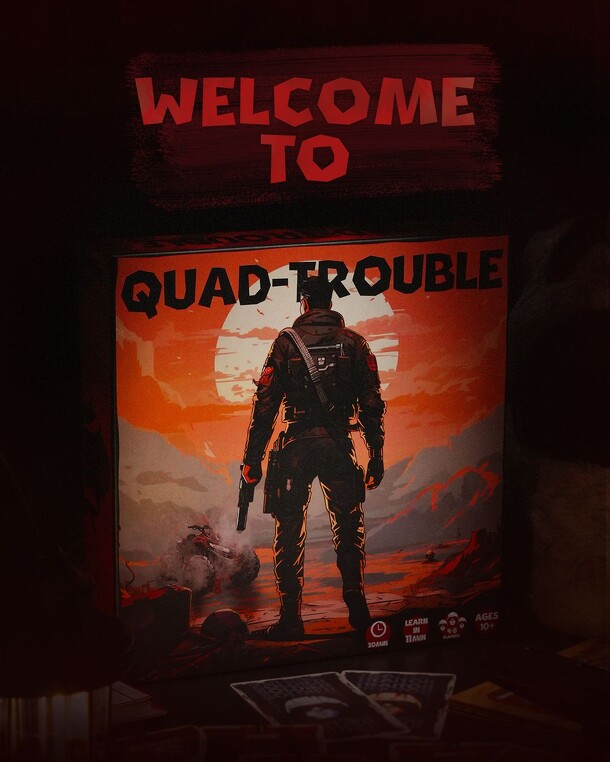 Quad Trouble is a game of survival, teamwork, and deception. A group of soldiers find themselves stranded in an unforgiving desert after their quad bikes unexpectedly grind to a halt. Little do they know, a traitor (or traitors) lurks among them, responsible for their misfortune. The objective of the soldiers is to repair their broken quad bikes and manage...
