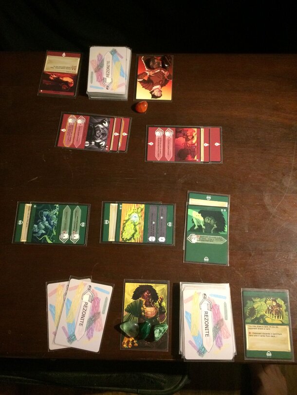 Rezonite is a two player duel where you battle using cards that represent mystical crystals. The goal of the game is to be the first player to reach a victory condition, which are printed on certain cards. This means you must cast a spell that has a victory condition and then use your other spells to help you achieve that condition, while preventing your...