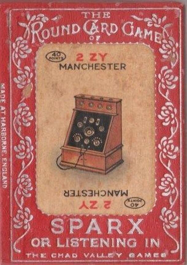 A game from the early days of radio. There are seven sets of seven cards and you use one set per player per game. Players call out for cards they need to complete their set (in the manner of Pit) and points are scored depending on the place the set originates from e.g. London. Glasgow, etc..The player has to call out "Tuned In to London" or where ever for...
