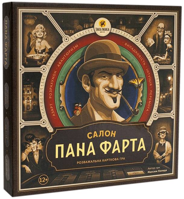 Салон Пана Фарта ("Salon of Mr. Fortune") brings the excitement of gambling into a strategic and social tabletop experience. Designed for 2 to 15 players, it challenges participants to make calculated wagers on different aspects of revealed cards, including color, type, and quantity of symbols. Players can also bet on whether others will succeed or fail in...
