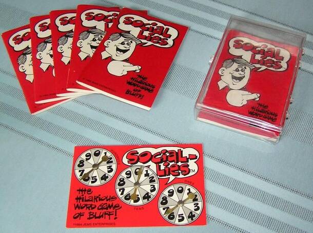 Social Lies is not a test of your knowledge. You make up a definition, present it with a straight face, and you are telling social lies. Social Lies is usually played with two teams. One player holds the book with the correct definitions. The other five books have random, nonsense lettering in place of definitions. Players holding those books must fake or...