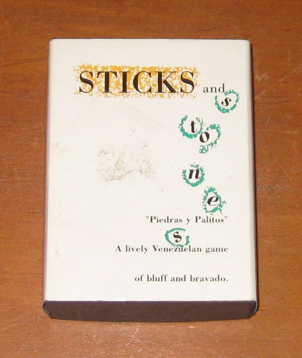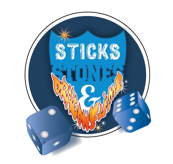 Sticks, Stones and Dragonflame is a 2P micro-game in which each player attempts to destroy the castle of their sworn enemy. Castles are formed by 6 cards or locations, numbered 1 to 6. Every turn, players secretly roll a die and assault the matching location of their opponent's castle. However, players are allowed (and encouraged) to lie about their die...