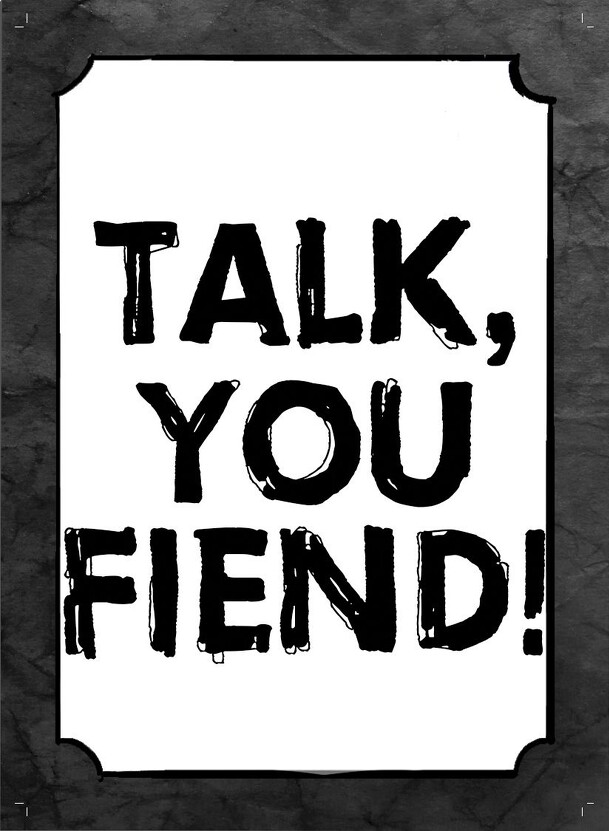 Acting as a hired torturer for the Mad King, the goal of "Talk, You Fiend!" is to be the best at your job by inflicting as much pain as possible on the prisoners by choosing to play varying levels of pain cards. Compete against other players to see who is the best at the job, but be careful not to overdo it as the prisoner can only collectively take so...