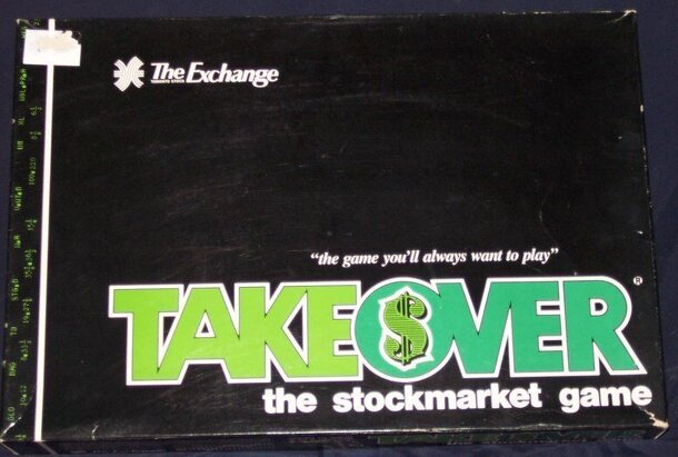 Takeover is a stock game with simulations of standard market mechanics and an additional twist of "hostile takeovers". Players must build up their financial portfolio by risking money on long or short selling, playing the variations in the market, using margins and generally speculating. Players roll and move around a Monopoly-type board, with landing...