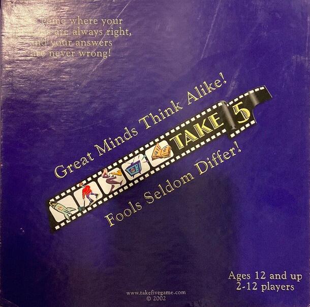 Players write their 5 best answers to questions on cards... i.e. 'Name 5 fictional characters you would like to invite to dinner.' Players then compare answers and tally matches and non-matches. There are 15 questions per game. The player with the lowest difference in matches and non-matches though the fun of the game is mostly found in the interesting...