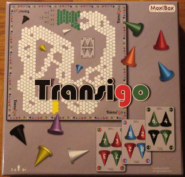 Transigo is a card driven abstract racing game for 2-6 players. Each player has 2 of the 8 colored pieces and the players try to keep it secret which pieces they have. The goal is to get the pieces through the track and obtain the best combined position for the two pieces. Each turn a player plays a movement card. All cards contain the colors of two pieces...