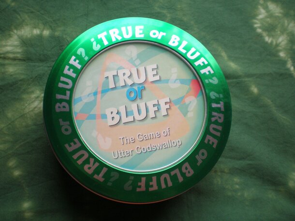 From the back of the box: True or Bluff - The Game of Utter Codswallop True or Bluff is a game of weird and wonderful word definitions! This game challenges you to identify the correct definitions from amongst a set of false inventions... ...the truth from the codswallop! Each word has been provided with three definitions and a fourth must be created off...