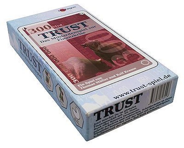 Economic game in which players play either company, bank or government. A player puts down a package of asset and debt cards - but only assets are face-up. The next player can either accept the package, add cards and pass it on, or doubt that the assets cover the debt cards. The wronged player gets permanent debts, and at the end of the game, the player...