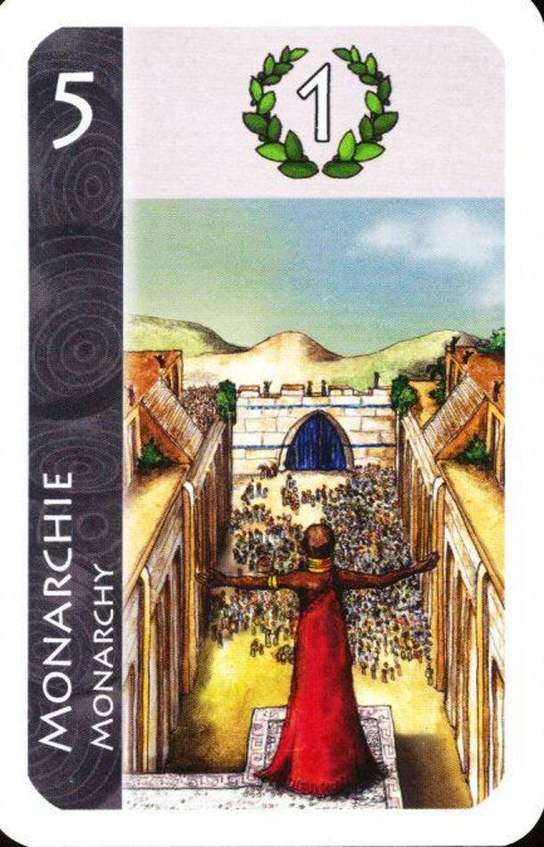 Promo card Monarchy from the german magazine "Spielerei" issue no. 105 (Oct.-Dec. 2014) The achievement Monarchy has a new edge with black color. It is the only achievement of level 5. No black card may be replaced by an achievement. Black cards are not immune from the effects of disasters. In addition to a black card no settlement can be set because the...