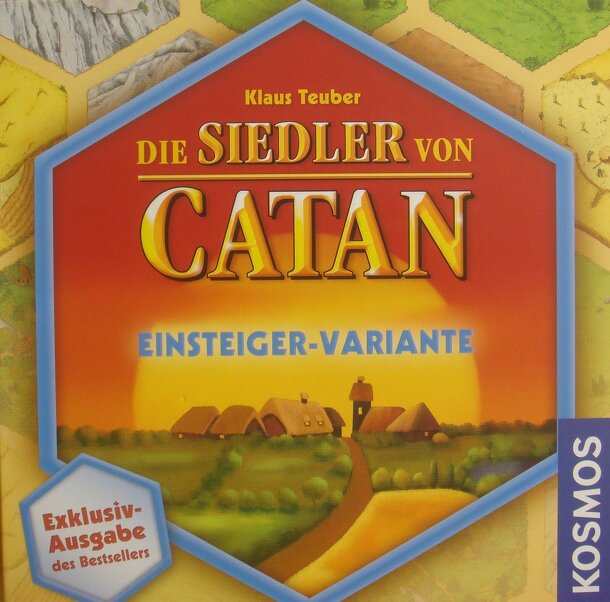 In the Settlers of Catan "Einsteiger-Variante" (First-time user), the award-winning game is reduced in size (with an edge-lenght of 25 mm) and with printed numbers on the hex pieces to allow for quick play and introduction to casual players. The Settlers of Catan are once again traveling through the lands of Catan, racing to develop their settlements....