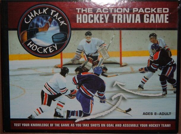 This action packed Hockey Trivia Game is designed for hockey fans 8-adult. There are over 100 challenging questions on hockey rules and trivia. After landing on ChalkTalk or Locker Room Trivia and answering the question correctly, get ready to take a shot on goal! ChalkTalk's unique patented Mag-Action goal system makes a shot on the goalie a combination...
