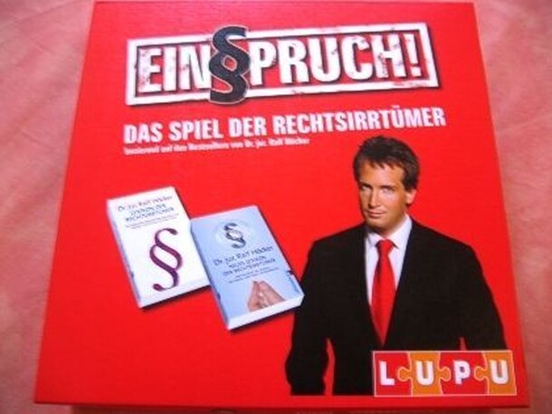 Einspruch (Objection) is a trivia game about (German) law. Players draw cards with statements regarding laws and try to guess whether the statements are true or false. Players have chips valued from 1 to 3 that they can bet on the result depending on how certain they are. Those who guessed correctly can move their pawns according to the chip they bet. The...