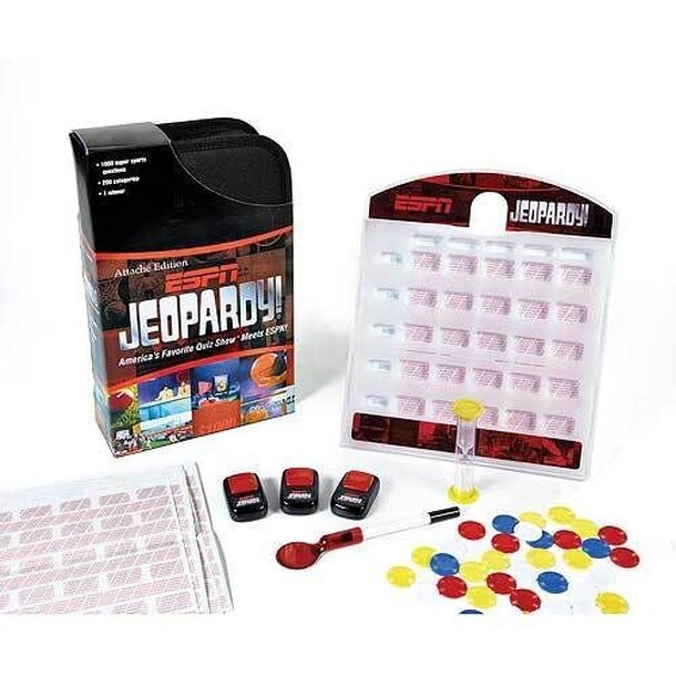 User review: One player acts a gamemaster for two to four other players. In most editions there are five categories. Each catagory has five dollar amounts. Behind each dollar amount is a statement of trivia having to do with the category. When a player thinks he or she knows the correect response to a statement, that person signals and responds in the form...