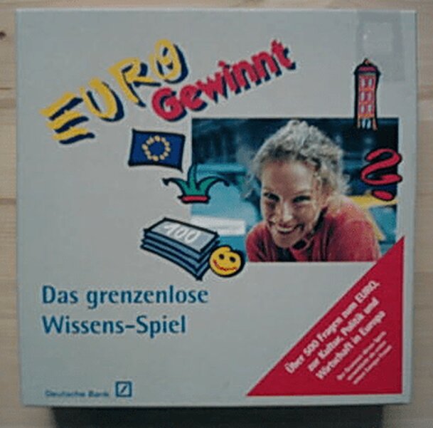 Objective: make the most money moving by dice on one of three rings on the board - answering multiple choice questions correctly - moving by turn - 1 each player starts with 4000 Euros 2 chooses a ring to walk on 3 moves according the rolled die A ending on a '500' field draw a card - answer correct ==> earn 500 Euros B ending on a 'risk' field earn double...