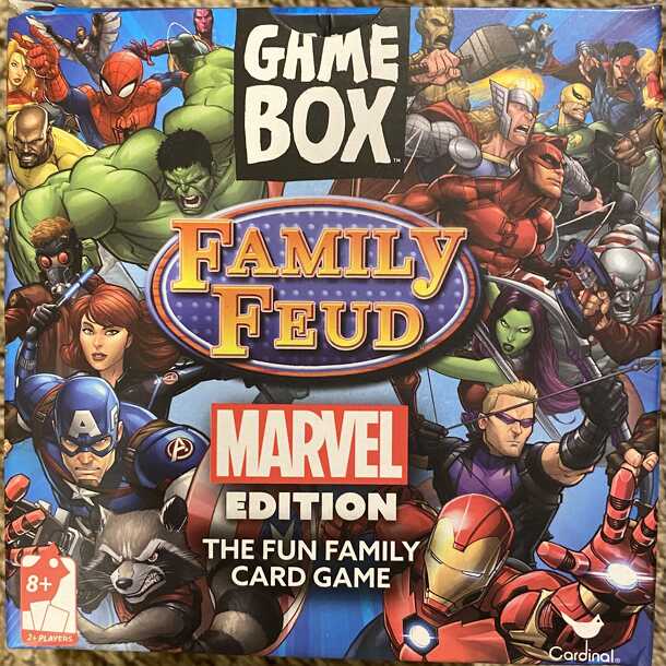 "Survey says...the card game based on the popular tv show Family Feud. Give the most popular answers to a variety of MARVEL themed survey questions to win. User review: One player acts as host to ask questions and verify responses while the other players divide into two preferably equal teams. The teams each choose one their own to faceoff for the...