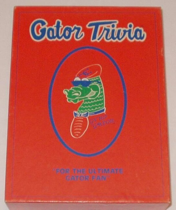 This is a football trivia game that features questions about the University of Florida. Questions cover the beginning of the program in 1899 and continue until the game's publication date in 1984. The game board is a representation of the Gator football stadium. Players move up and down the field by correctly answering questions about players, coaches...