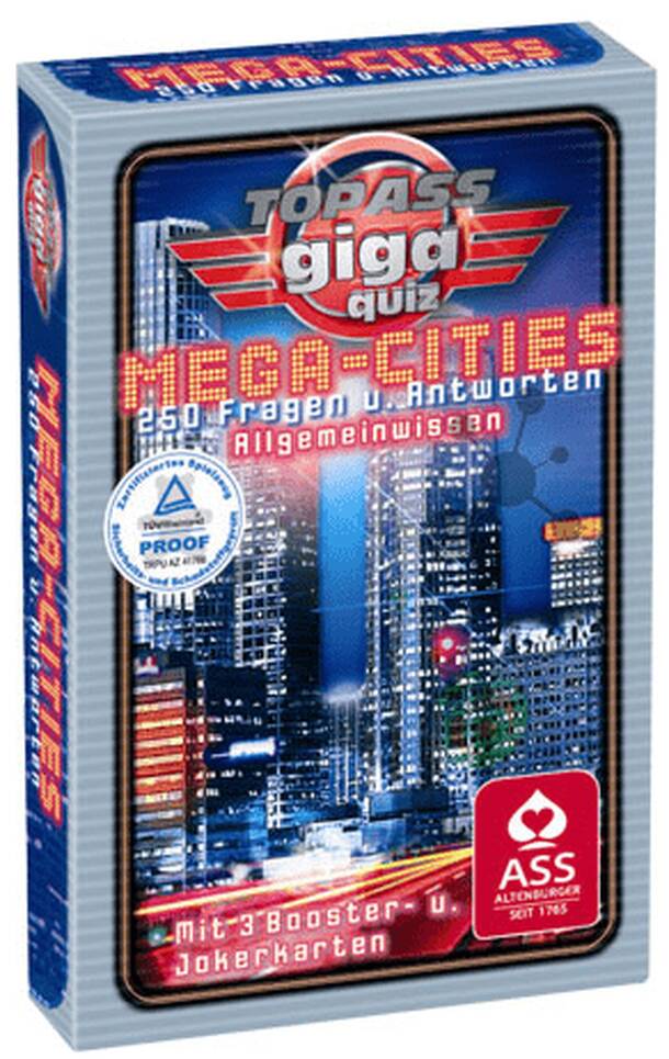 With over 250 questions and answers about big cities, additional Joker and booster cards that affect the course of the game, provide games and guessing fun with the Giga-effect. There are questions one side and 4 variants another side of the card. Draw a card, ask a question and read the variants. Who bet the correct answer scores a point. Winner is the...