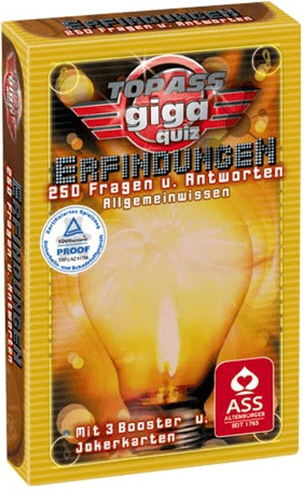 With over 250 questions and answers about inventions, additional Joker and booster cards that affect the course of the game, provide games and guessing fun with the Giga-effect. There are questions one side and 4 variants another side of the card. Draw a card, ask a question and read the variants. Who bet the correct answer scores a point. Winner is the...