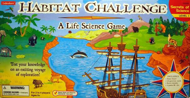 Publishers Description: "Who will be the first explorer to sail to the polar ice cap? It could be you…if you can answer questions about animals and their habitats correctly! In this skill-building game, students answer fascinating life science questions to move around the game board from one habitat to the next…then slip the question cards in the secret...