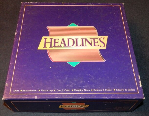 Headlines is a Monopoly clone quiz game, in which players try to compose tabloid headlines from stories read to them. Whilst a sand timer runs down, roll & move round the track, stopping on categories like Sports, Law, Business, Lifestyle. A card with 4 stories is taken for that category and one of the stories read out to the player. Using key words from...