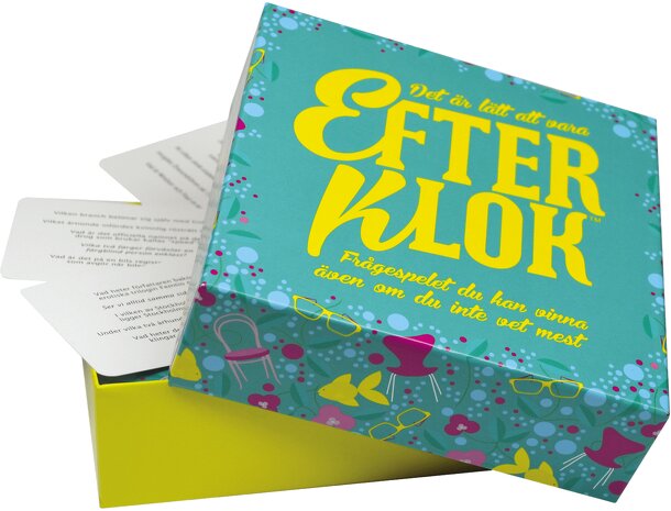 In Efterklok, a.k.a. Hinterher ist man immer schlauer, you answer five questions in a row. After you've answered, every player learns how many correct answers you gave, but not which questions were correct. The same five questions are now presented to the player after you, and they can choose to either copy your answers or give their own in the hope of...