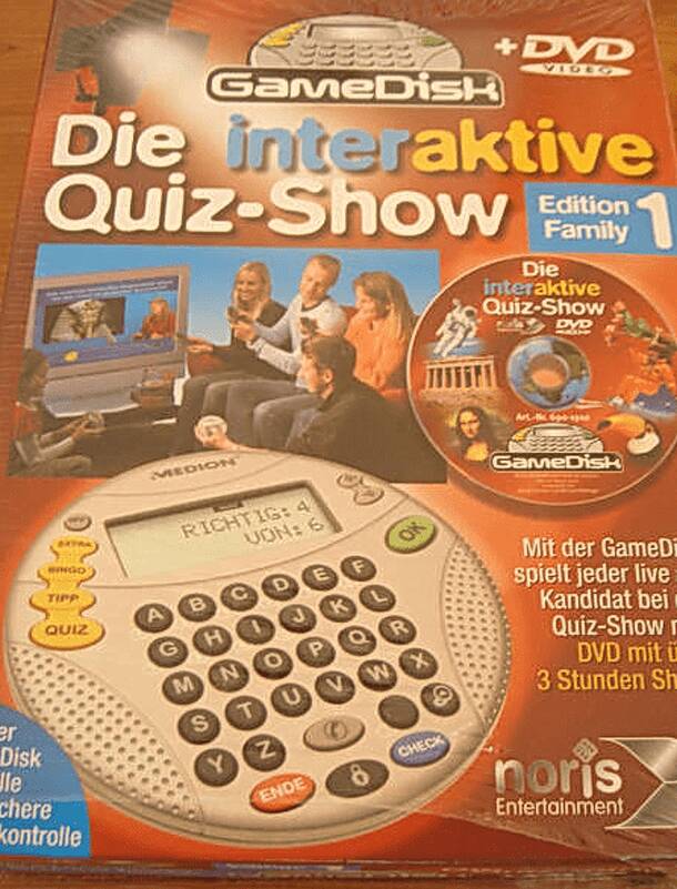 Die interaktive Quiz-Show Junior verison. With the DVD and a gimmick called GameDisk one can play solitaire or up to 6 players can play the interactive quiz show, provided one has a DVD player or a computer. Per player one needs one GameDisk or an answer pad. or 10 Quiz rounds can be chosen, each round has 5 games and each game asks 6 questions. For each...