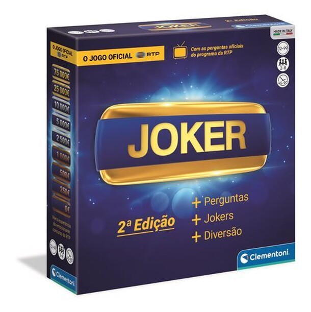 Experience the incredible RTP1 contest with the official Joker game. With 3 different ways to play, this board game will put your knowledge to the test with 1700 official TV show questions. Whether you play alone, in a team or train for your live participation, you'll have to go through the 12 rounds with the help of your 7 Jokers and Super Joker, in order...
